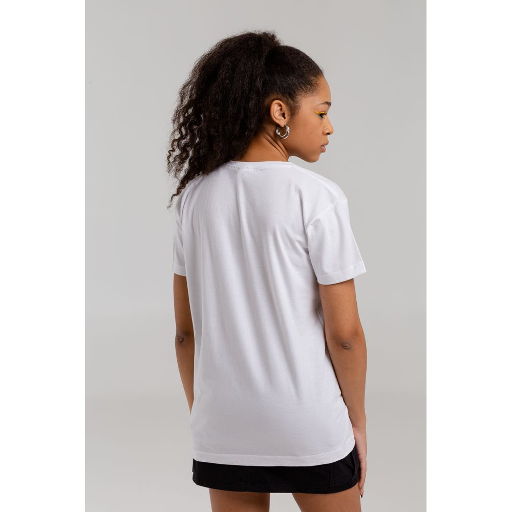 Женская футболка с уплотненными швами на плечах и двойным швом с эластаном. Четырехслойная резинка на воротнике предохраняет его от растяжения.