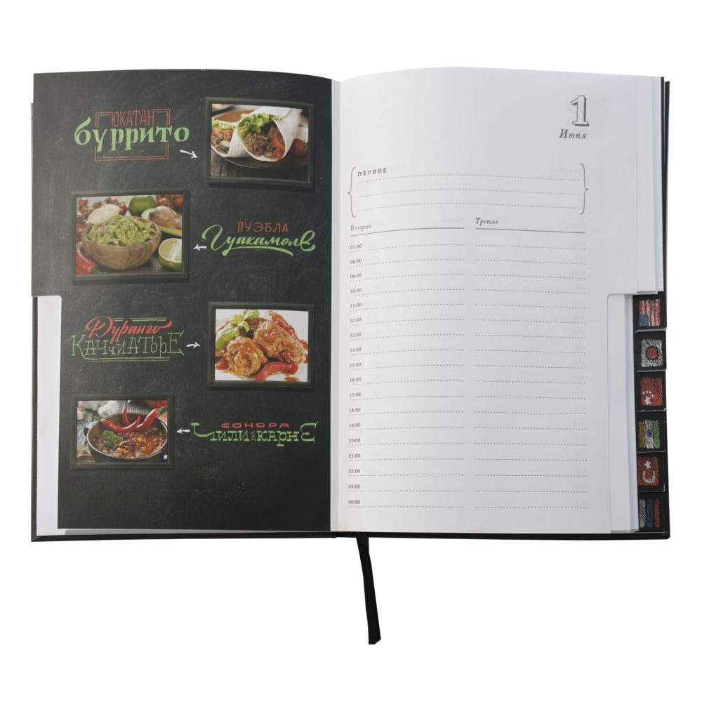 В ежедневнике собраны рецепты из разных уголков земного шара — по 4 рецепта из 12 стран мира. Мы изучили кухню каждой страны и предлагаем вам рецепты самых традиционных национальных блюд с указанием географического места их происхождения. Каждый месяц вас ждет знакомство с новой страной, и каждый уикенд — с новым блюдом, которым вы сможете порадовать себя и своих близких.
