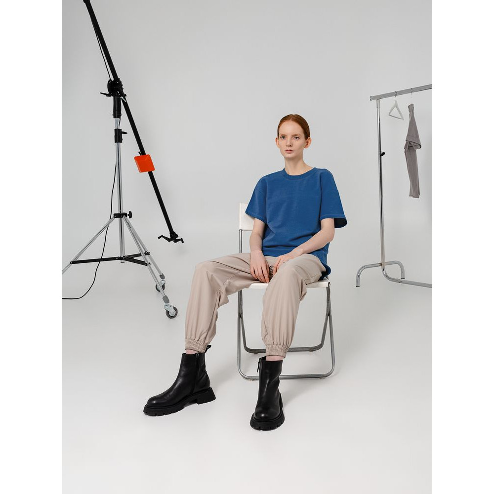 Футболка унисекс свободного кроя со спущенным плечом и смещенными плечевыми и боковыми швами.