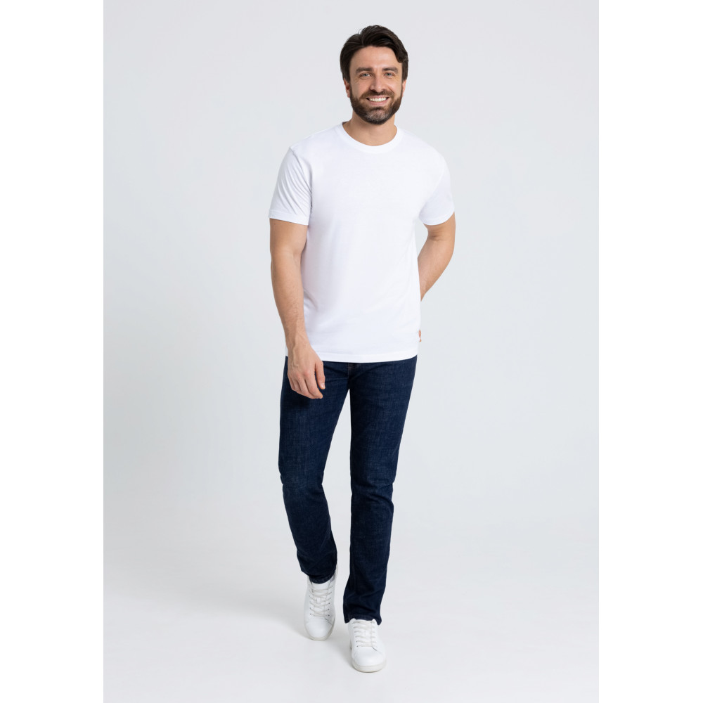 Мужская футболка прямого силуэта с округлым воротом и втачным рукавом. Шов горловины спинки и плечевые швы усилены бейкой из основного полотна.