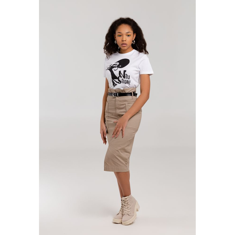 Женская футболка с уплотненными швами на плечах и двойным швом с эластаном. Четырехслойная резинка на воротнике предохраняет его от растяжения.