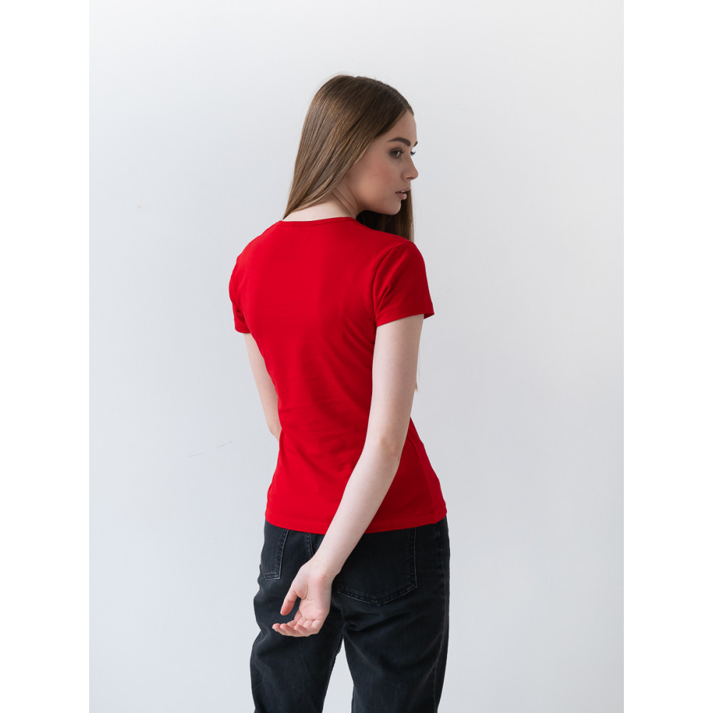 Женская футболка приталенного кроя с округлым врезом и втачным рукавом.