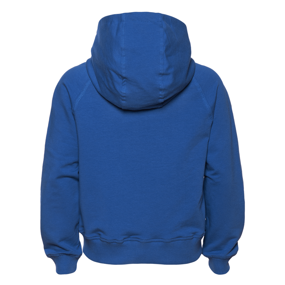 Детская олимпийка свободного силуэта с капюшоном комфортной глубины, рукавом-реглан, накладным карманом и застежкой на контрастную молнию. Капюшон дополнен шнурком для регулирования прилегания, манжет и низ изделия оформлены широкой эластичной резинкой.