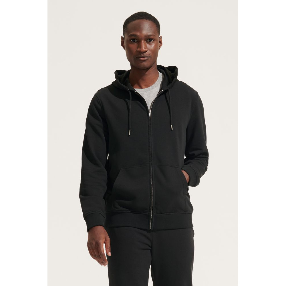 Базовая толстовка унисекс на молнии выполнена из органического хлопка и переработанного полиэстера.