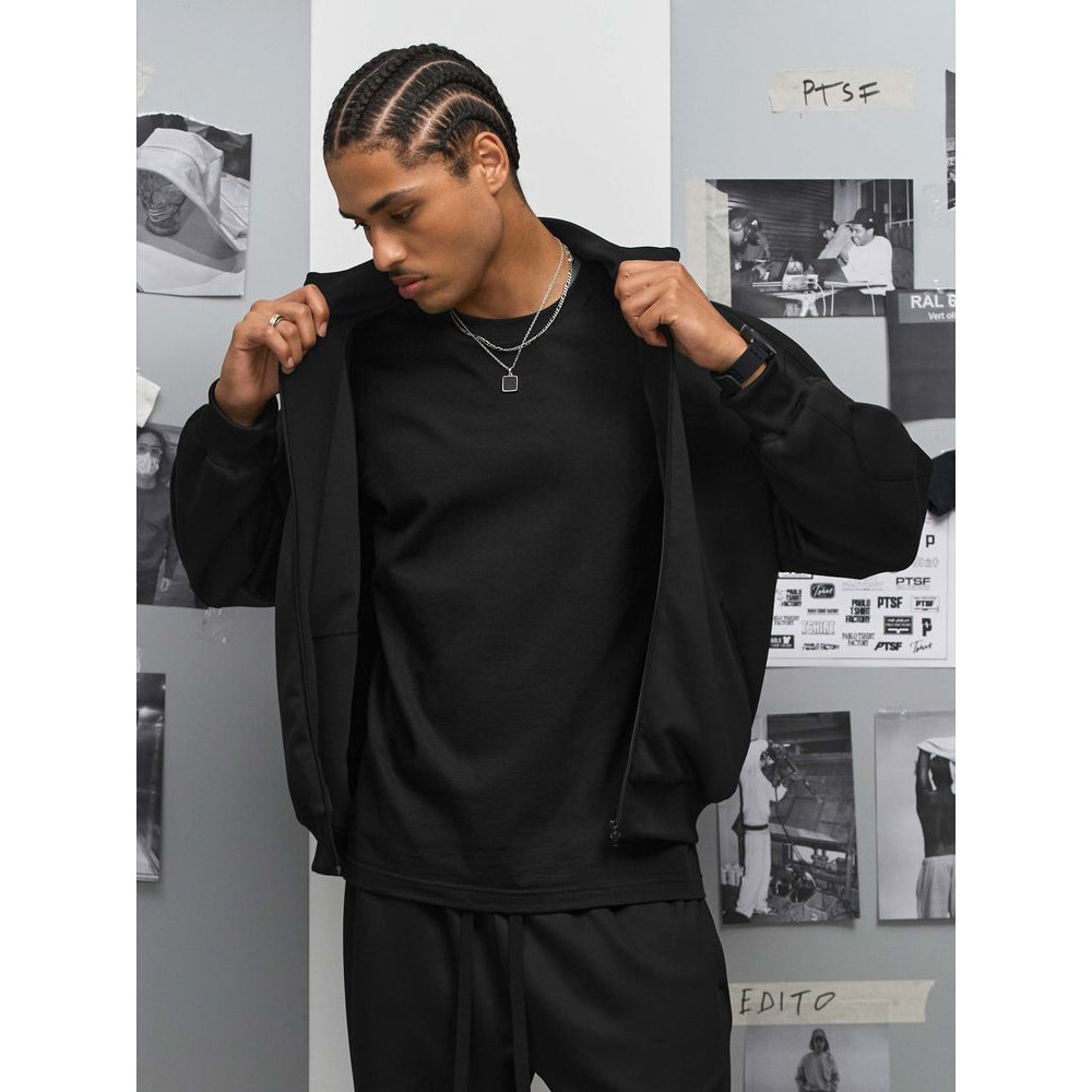 Спортивная куртка в стиле кежуал со свободной посадкой. Выполнена из технологичного трехслойного материала, известного как ткань скуба или трикотажный неопрен, в самом центре которого спрятаны объемные нити текстурированного полиэстера.
