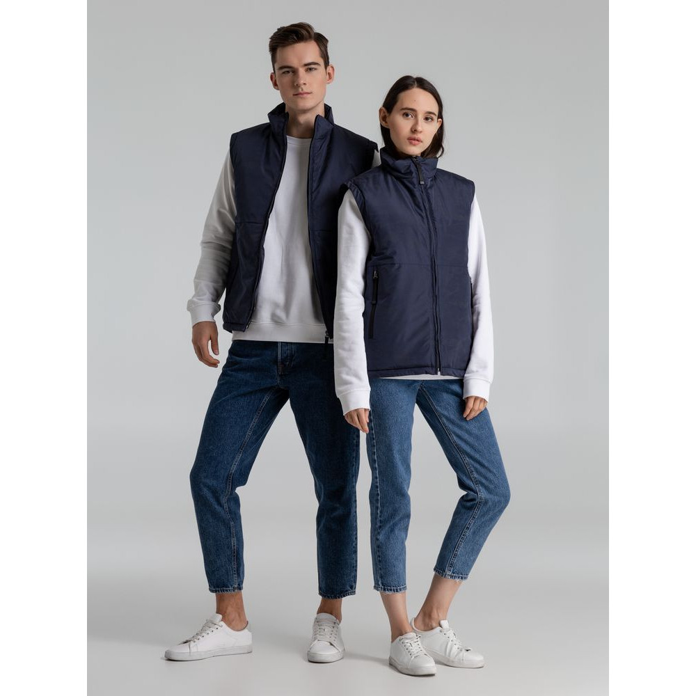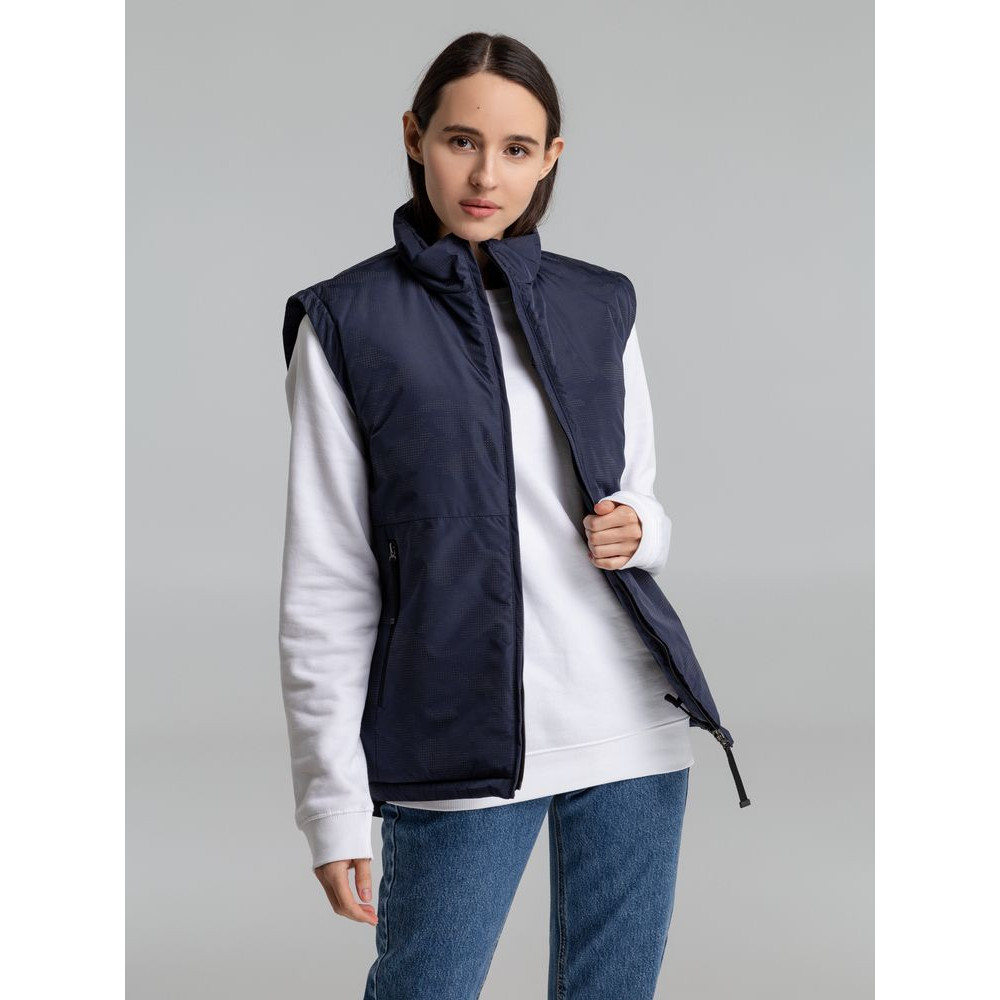 Жилет с воротником-стойкой и светоотражающим рисунком.