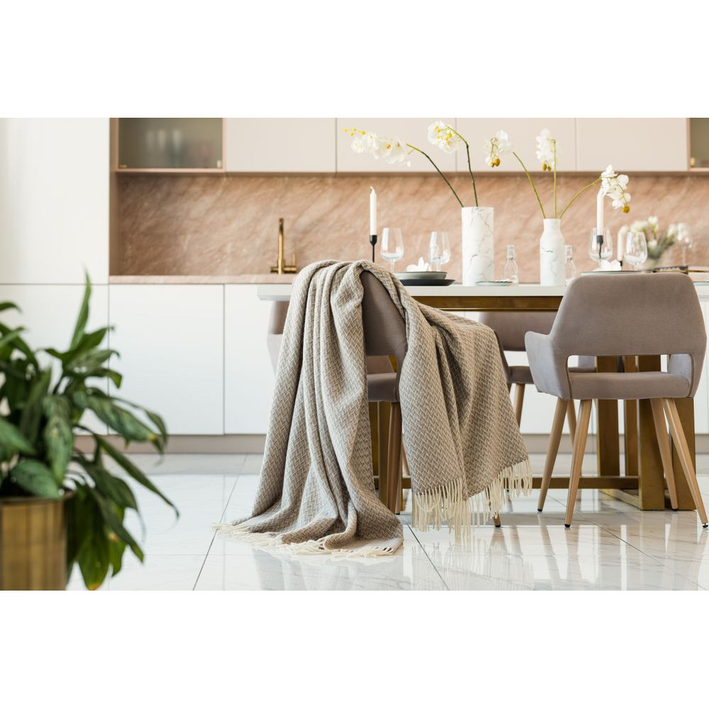 Плед с бахромой «Селигер» приглушенного пастельного оттенка из натуральной новозеландской шерсти — это возможность без лишнего пафоса пожелать процветания и благополучия своему деловому партнеру.