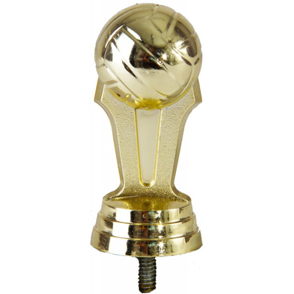 Цвет: золото, материал: пластик. Вид спорта: волейбол. Фигурка выполнена в виде перевёрнутого вытянутого конуса. Вверху края сбоку скошены под наклоном. Вверху фигурку украшает объёмный волейбольный мяч, украшенный вытянутыми линиями. Фигурка выполнена в золотом цвете, что придаёт ей роскоши и уникальности. Ниже - круглое основание, на котором имеются горизонтальные линии. Высота, см: 7.6 Вес, кг: 0.035. Фигурку возможно закрепить на цоколь, постамент или кубок.