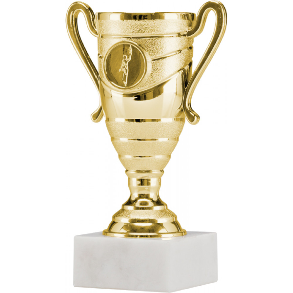 Кубок состоит из трех элементов: чаша, стем, цоколь. ¶Чаша кубка изготовлена из пластика, цвет - золото/серебро/бронза. Чаша глубокая, имеет вытянутую форму в виде кувшина. По всему периметру чаша украшена шероховатыми линиями. В середине чаши находится эмблемоноситель, диаметром 25 мм. К чаше прикреплены ручки, выступающие за ее края. Ручки гладкие, без узора. Каждая ручка имеет две точки крепления к чаше. Стем кубка пластиковый. Имеет форму приплюснутого конуса с переходами в виде ступенек. Цоколь кубка имеет квадратную форму. Материал - мрамор. Цвет - белый, неоднородный.