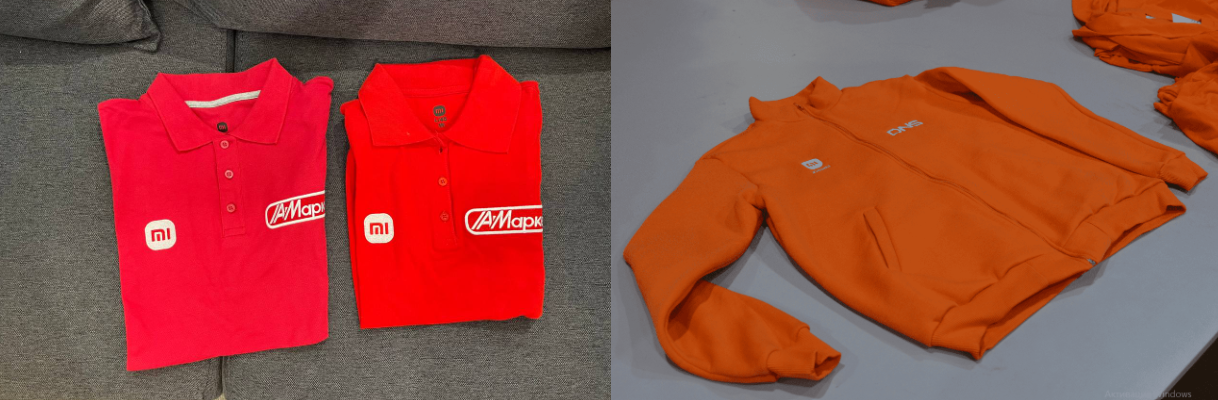 Футболки-поло для брендов-партнеров (Xiaomi, Fast). Они изготавливаются по тем же строгим стандартам: точное попадание в фирменный цвет, аккуратные воротнички, надежное нанесение логотипа и комфортные лекала.