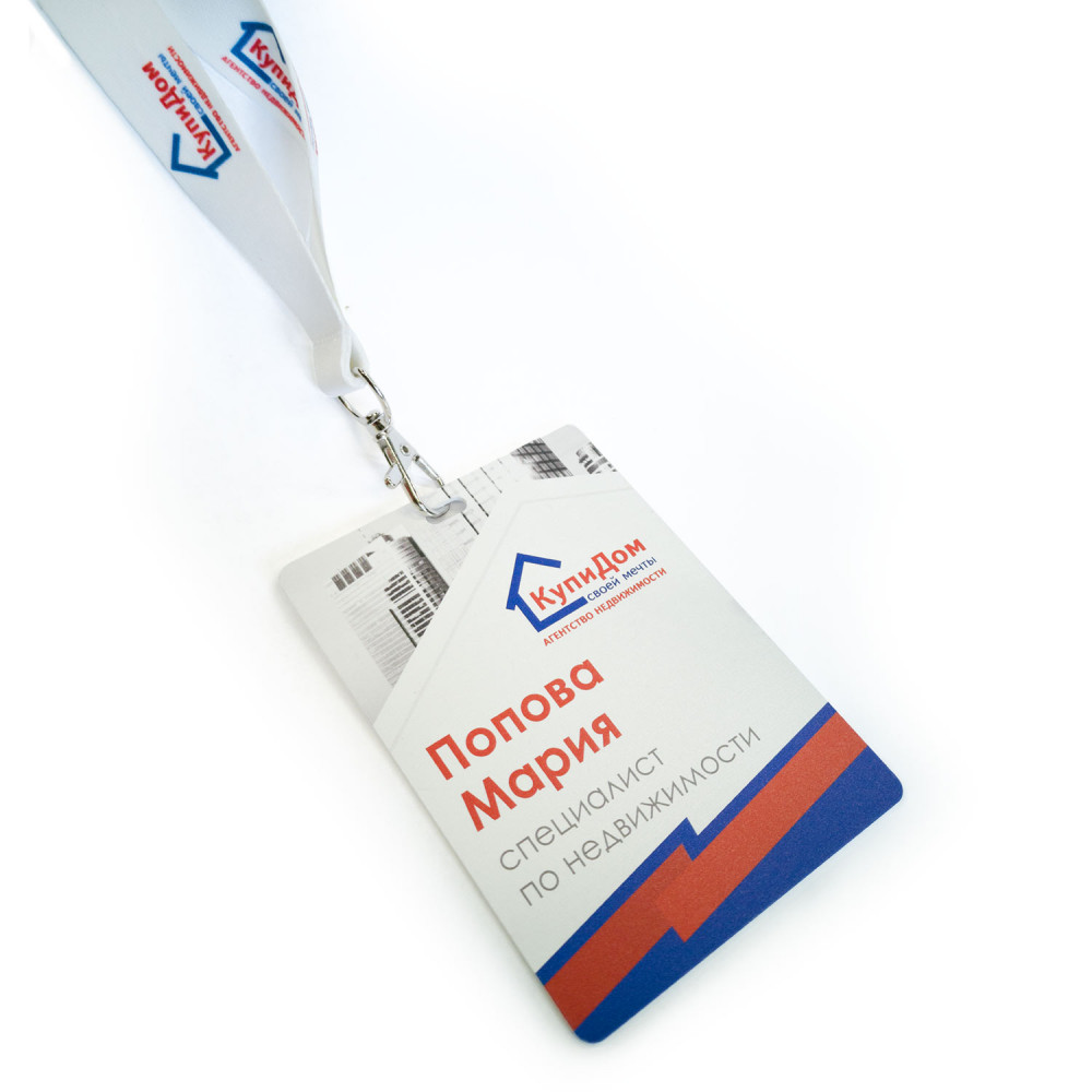 Материал - однослойный пластик белого или черного цвета, толщиной 0,8 – 1,6 мм. Это наиболее практичный для бейджа материал, стойкий к загрязнению, царапинам и воде.