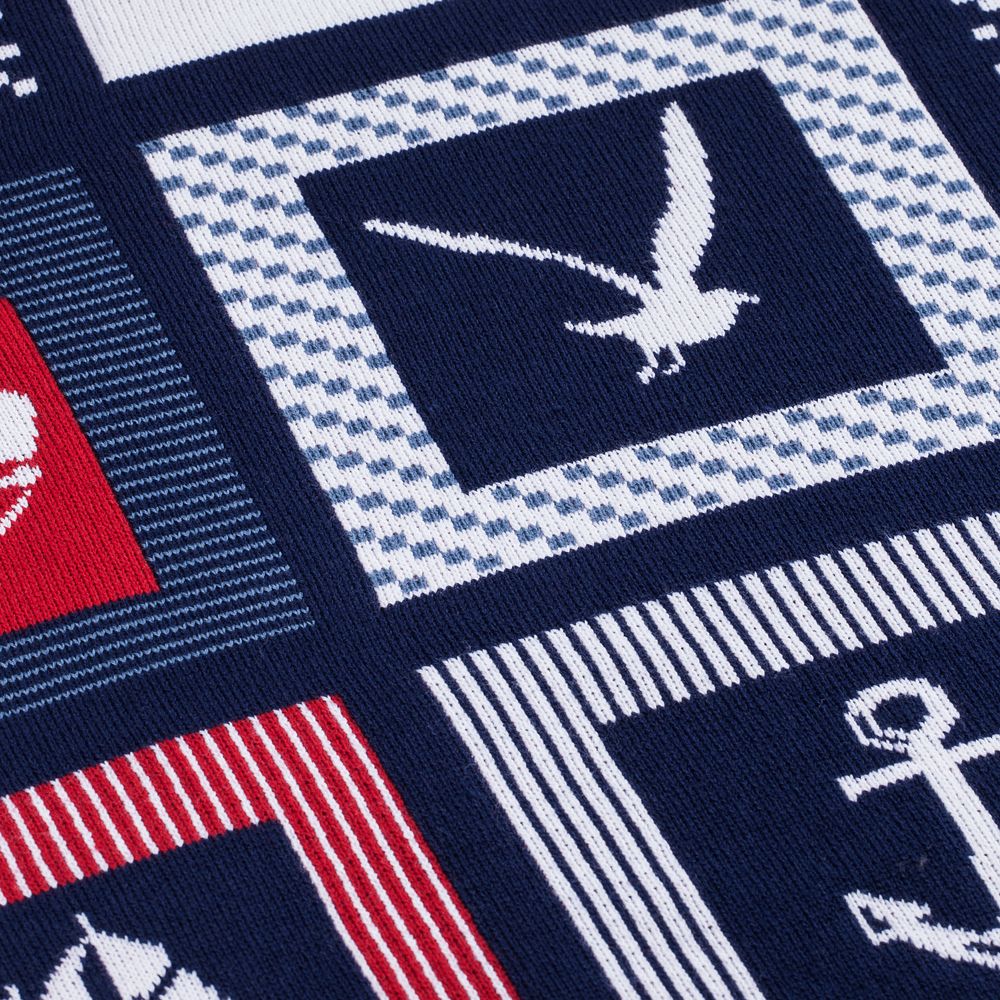В каждой части общего рисунка жаккардового пледа изображены главные морские символы.