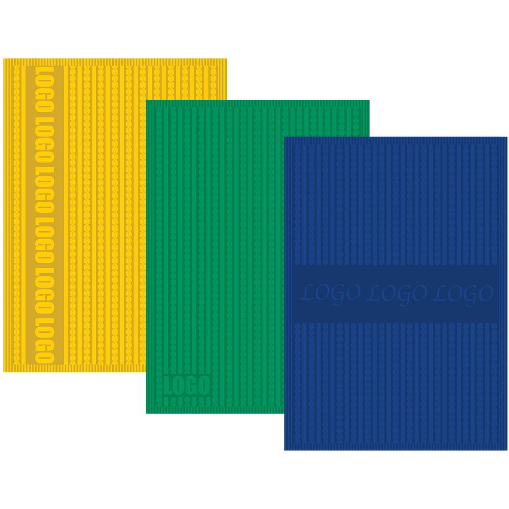 Модель: однотонный плед с фактурной вязкой, которая позволяет сделать его воздушным и объемным. Чередуя различные типы петель на гладком полотне, можно вывязать любую графику — логотип, текст, товарный знак.