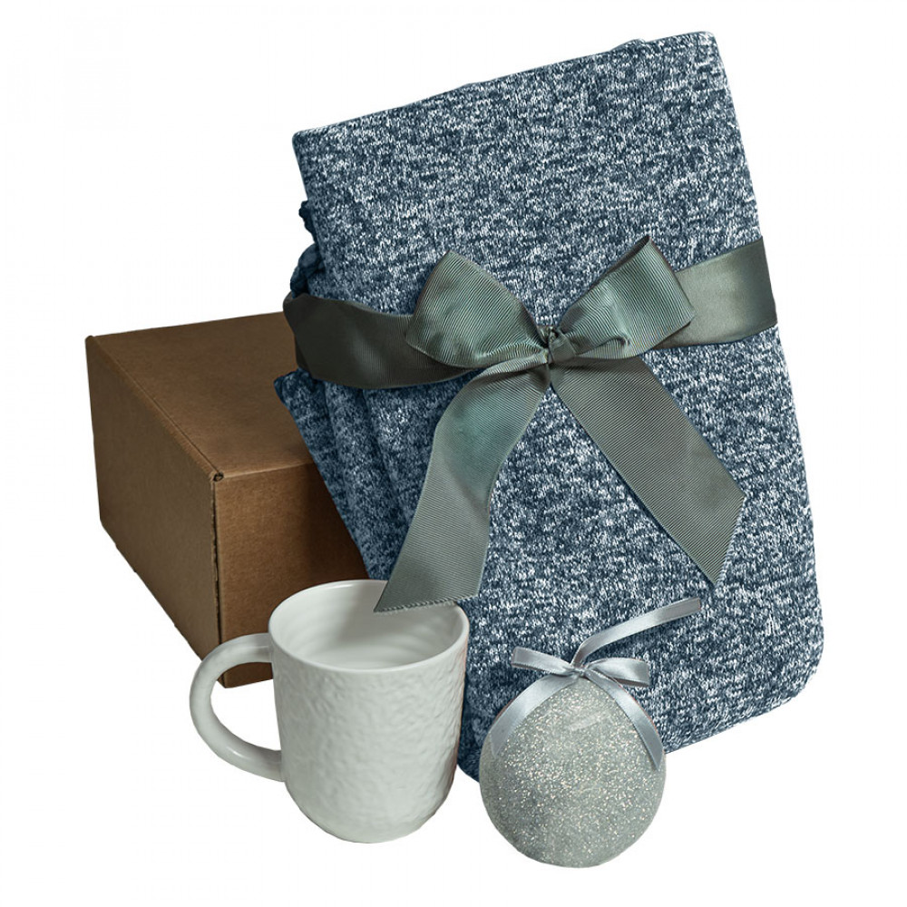 Параметры: Подарочный набор HOLIDAY: плед, кружка, шар новогодний, коробка; синий