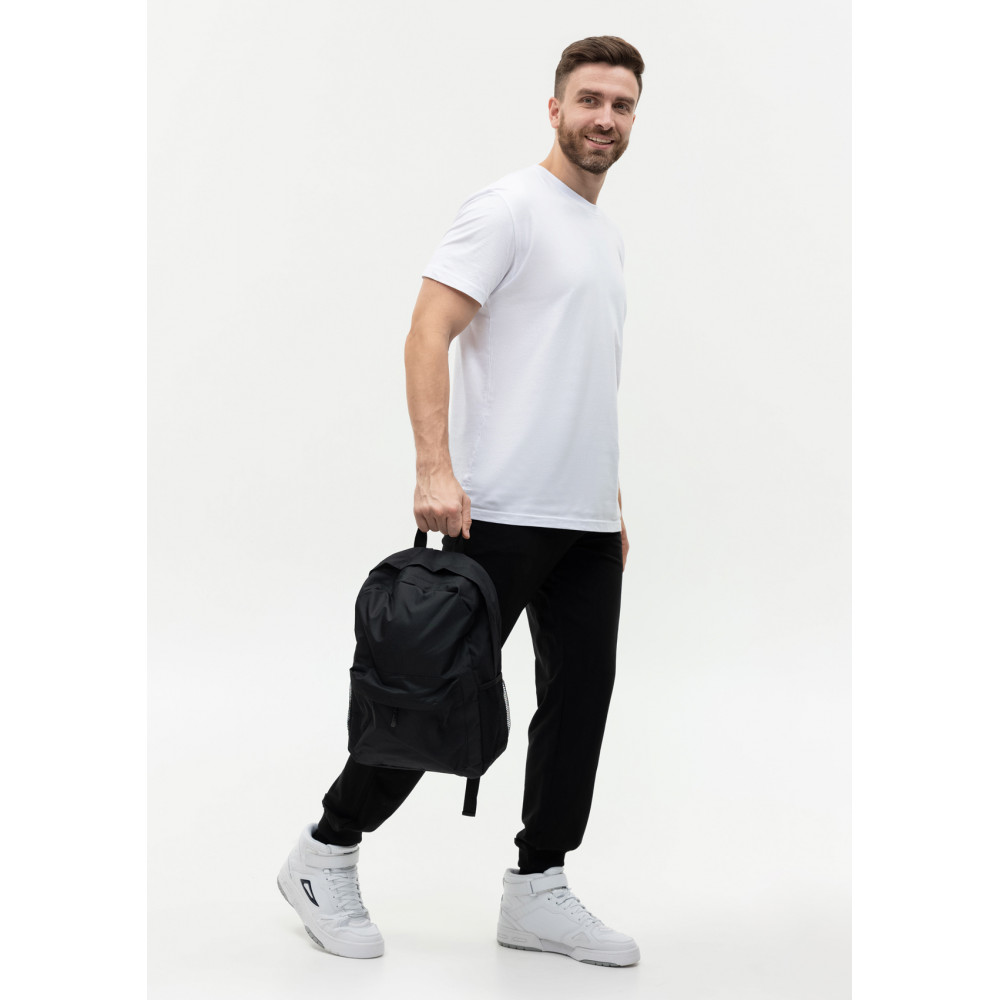 Рюкзак выполнен из плотной матовой ткани на основе полиэстера, которая не требует специального ухода. Модель имеет вместительное основное отделение, в него можно положить документы, ноутбук, зонт и прочие необходимые вещи.
