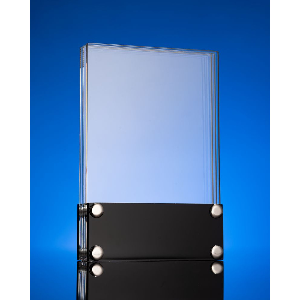 Придать награде законченный вид поможет шильд с гравировкой на основании.Трехслойная награда из акрила с креплением на 4 винтах. Толщина прозрачных панелей - 4 мм.