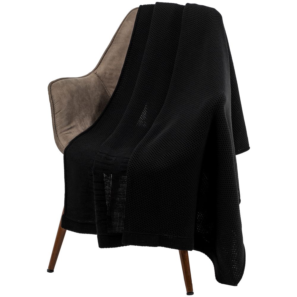 Плед с вывязанным логотипом и рельефным узором в фирменном цвете вашей компании.