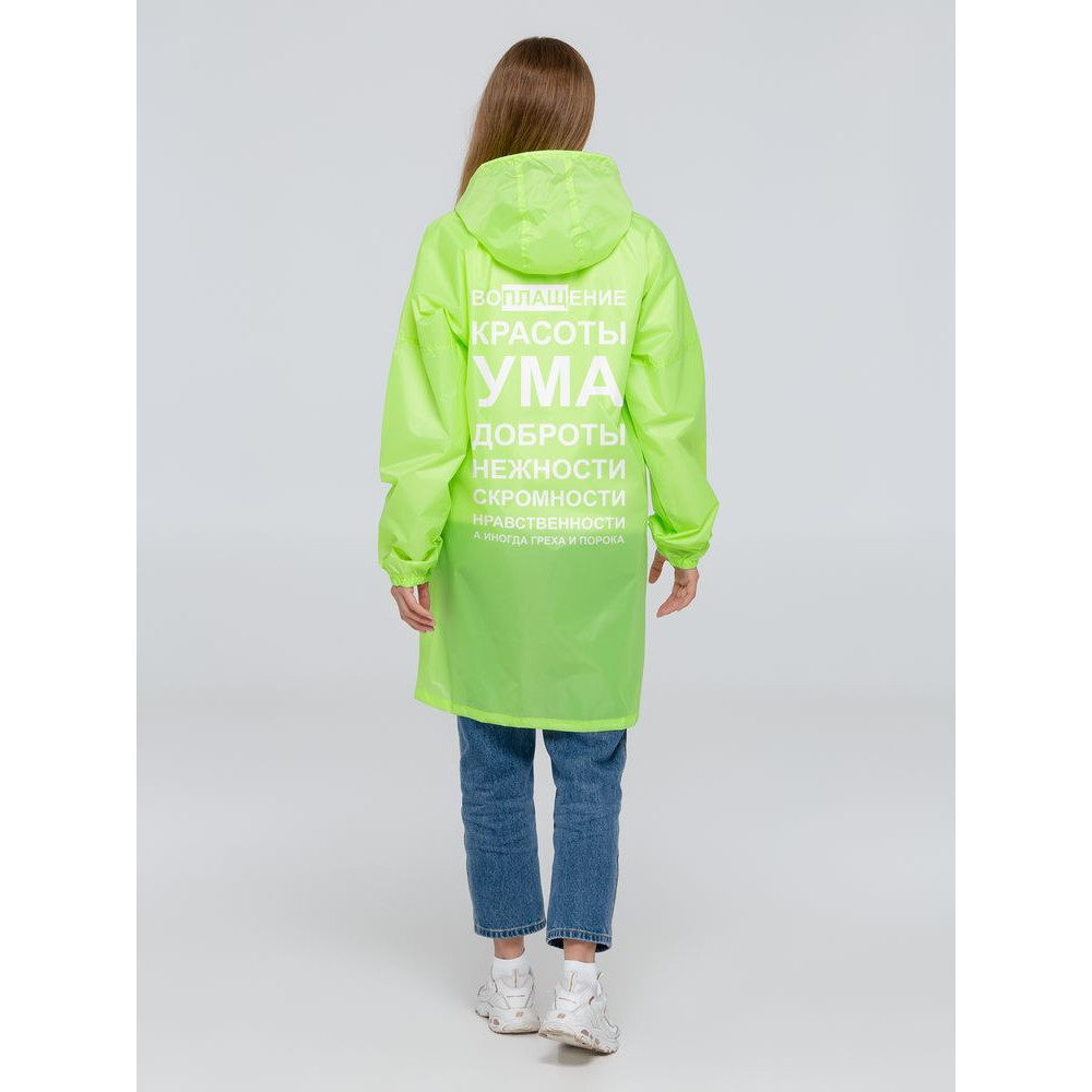 Плащ-дождевик из ткани таффета на молнии с капюшоном. Складывается в мешочек — удобно брать с собой.