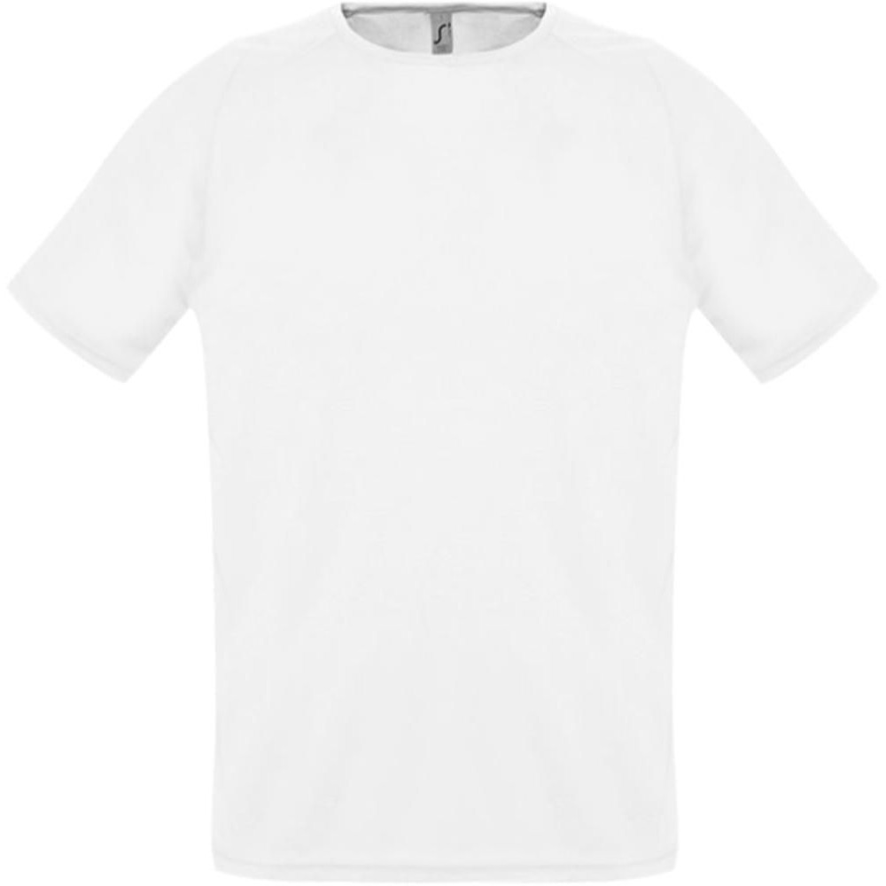Футболка из спортивной сетки с рукавом реглан. Низ изделия и низ рукавов с двойной отстрочкой.
