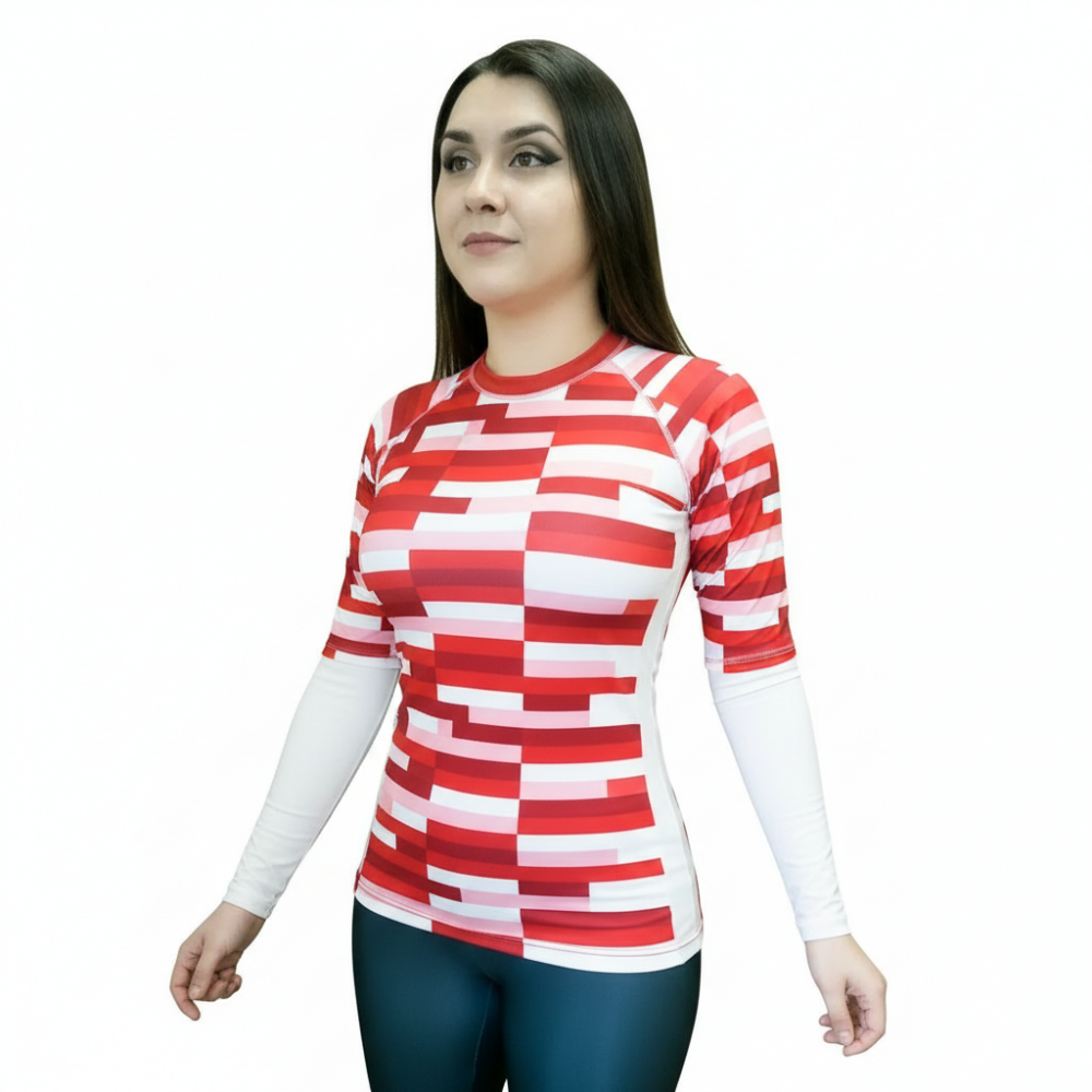 Параметры: Рашгард женский спортивного кроя с плоскими швами, модель с длинным рукавом, материал бифлекс