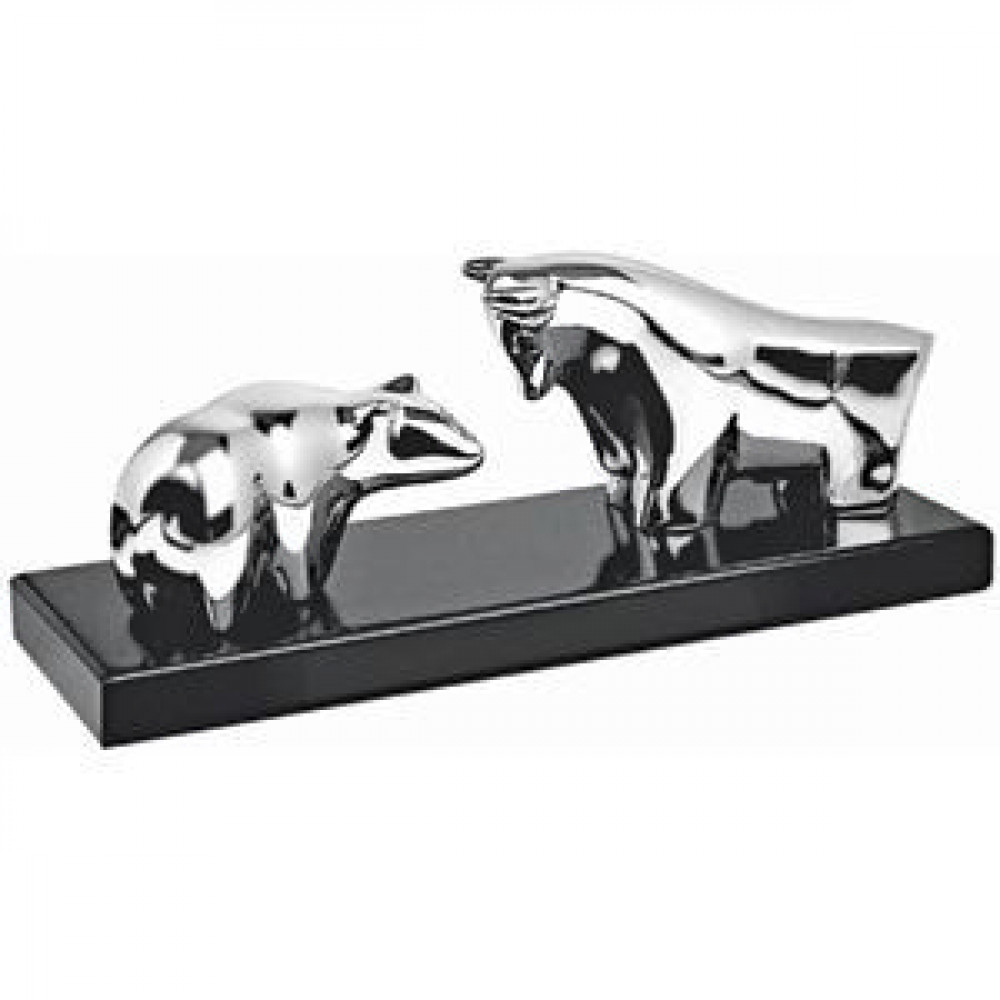 Параметры: Стела "Быки и Медведи"; серебристый; 28х10х10 см; металл, дерево; шильд
