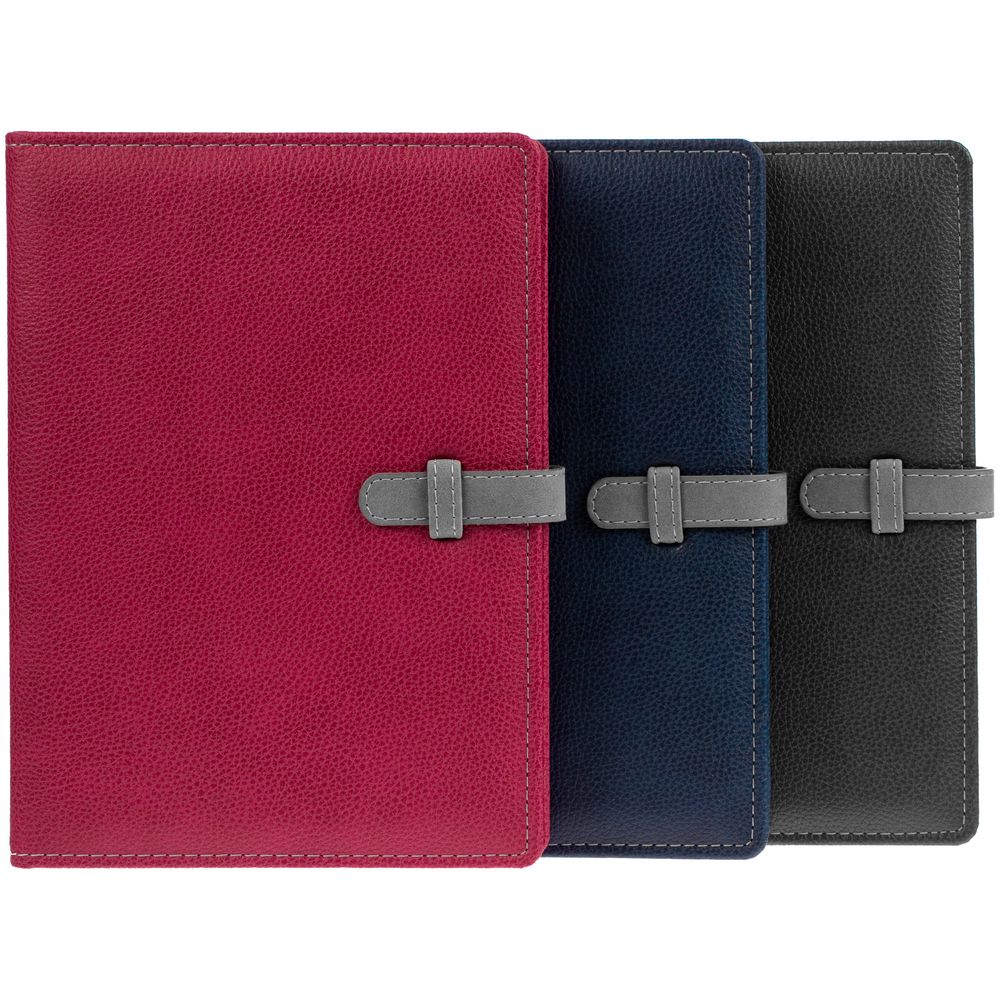 Изящный ежедневник в съемной суперобложке из искусственной кожи с хлястиком.