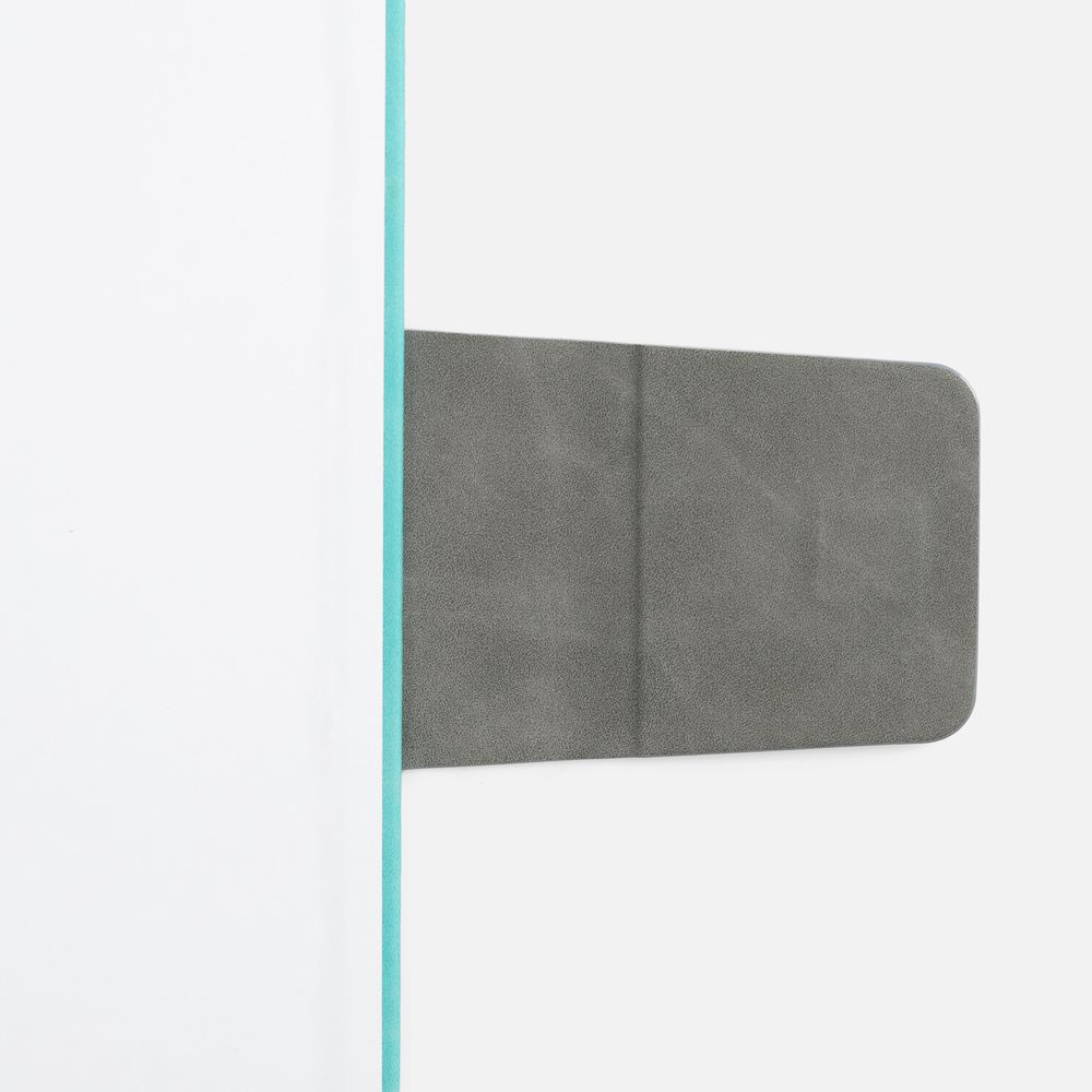 Ежедневник с твердой обложкой, выполнен из материала Nubuck Touch, цвет морской волны II, дополнен капталом, ляссе и обрезом серого цвета. Застежка — хлястик на магните из материала Nubuck Touch, серый СС.