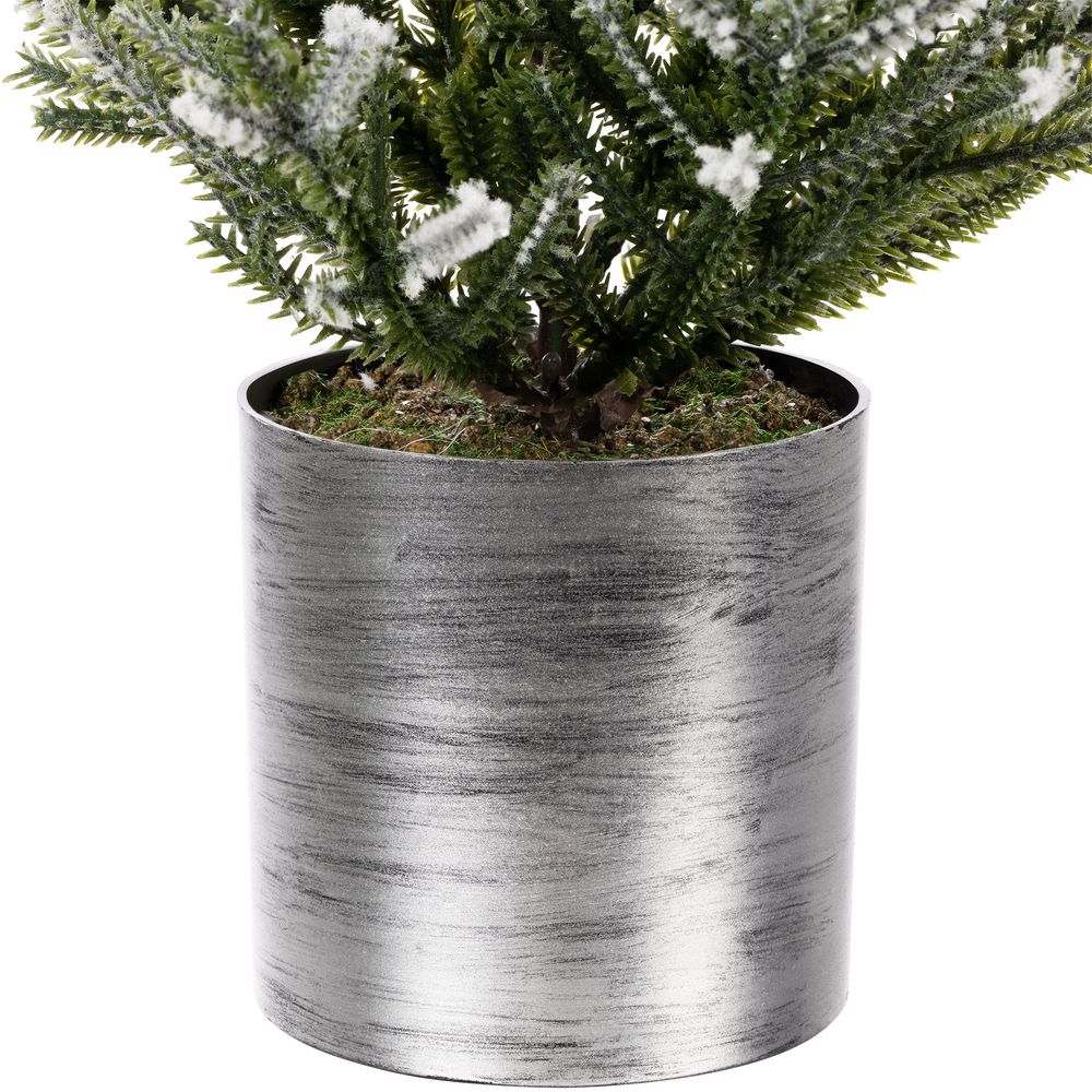 Подставка создает ощущение, что в дом занесли настоящее растение в горшке, а веточки, словно покрытые снегом, добавляют особой атмосферности и праздничности. С литыми иголками хвоя выглядит натуральнее, а силуэт елочки — живее и реалистичнее.