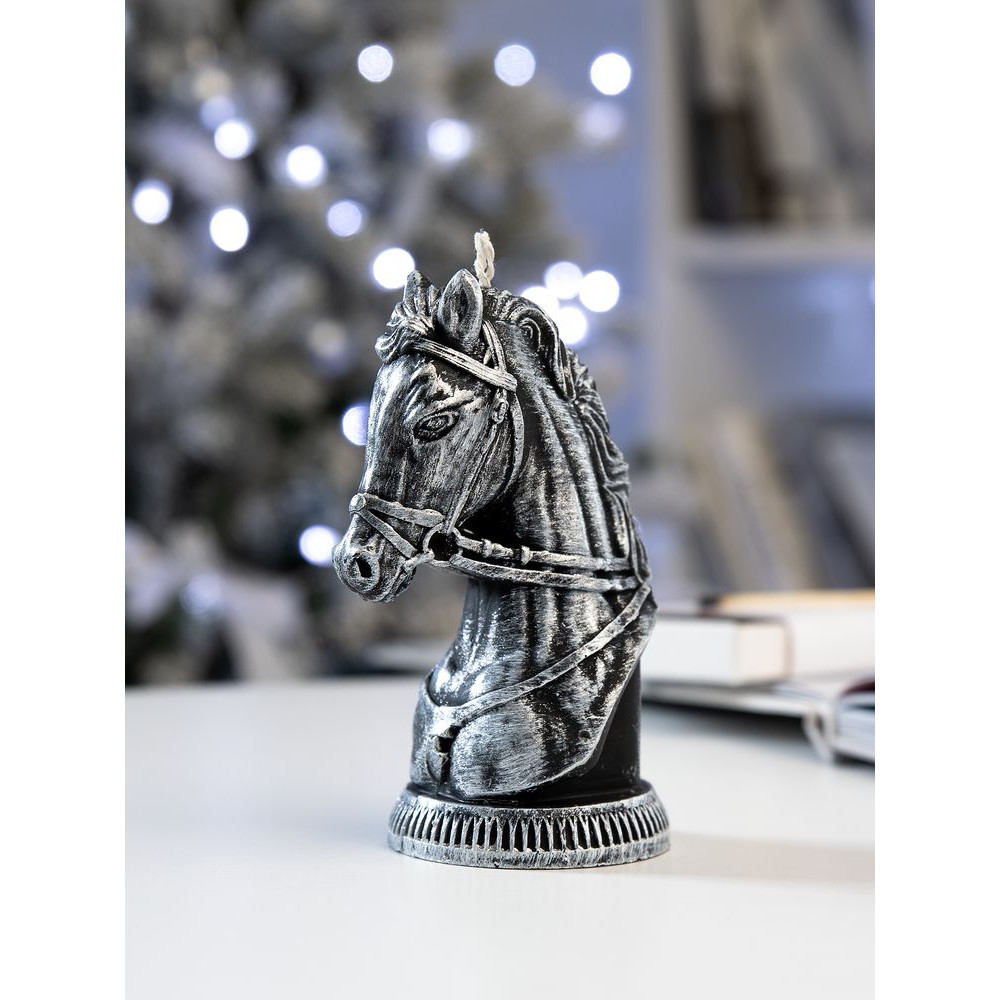 Свеча фигурная «Бюст лошади», серебристая