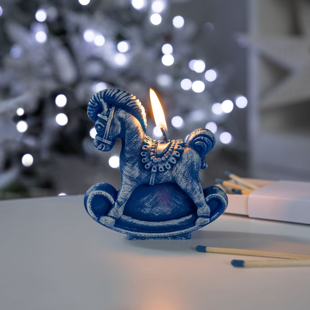 Свеча фигурная «Лошадка-качалка», синяя 330 ₽