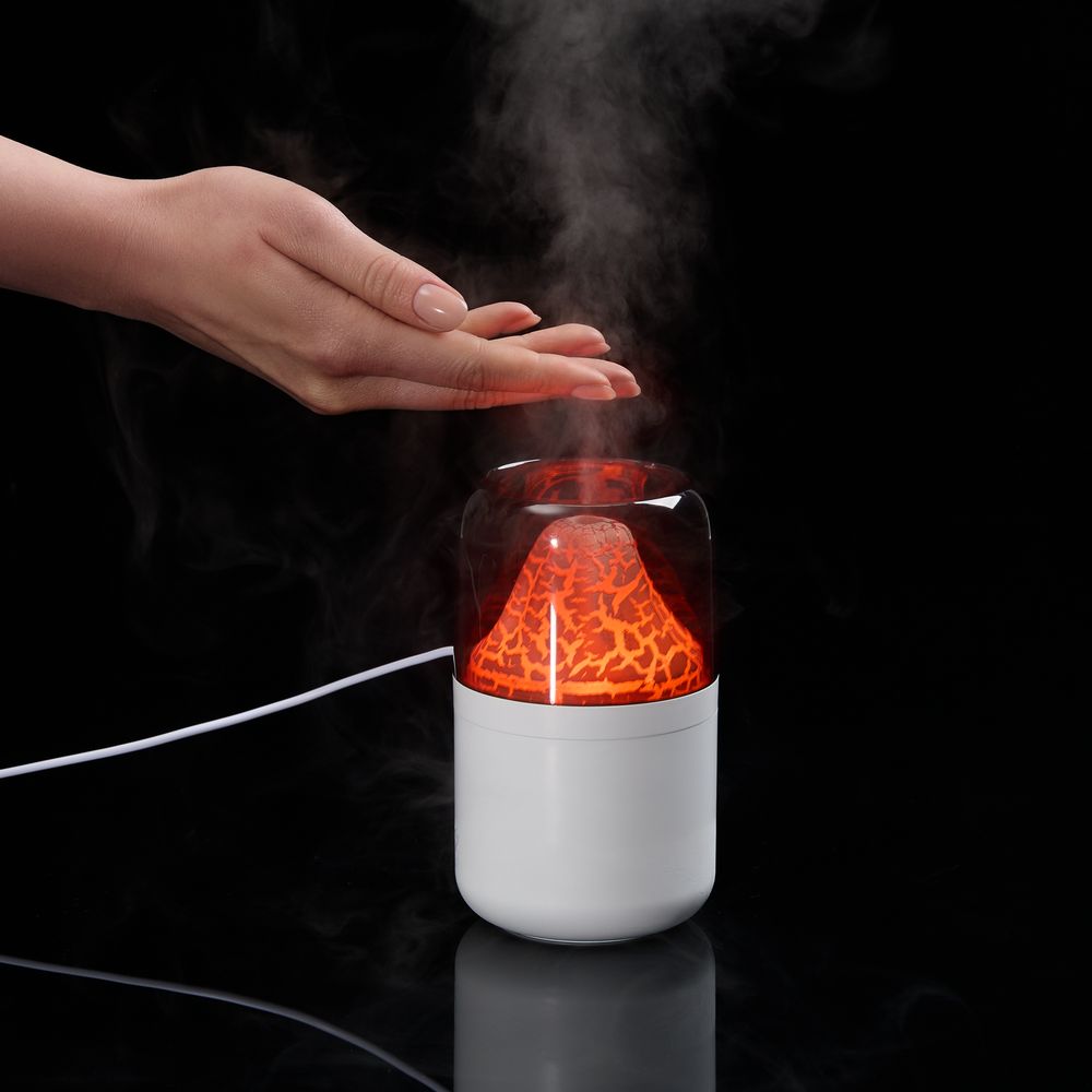 Отличительная черта модели Jogo — это подсветка. Благодаря оптическому эффекту верхняя часть увлажнителя напоминает жерло вулкана, из которого вырывается пар. Необычное и яркое визуальное решение, моментально притягивающее заинтересованные взгляды.