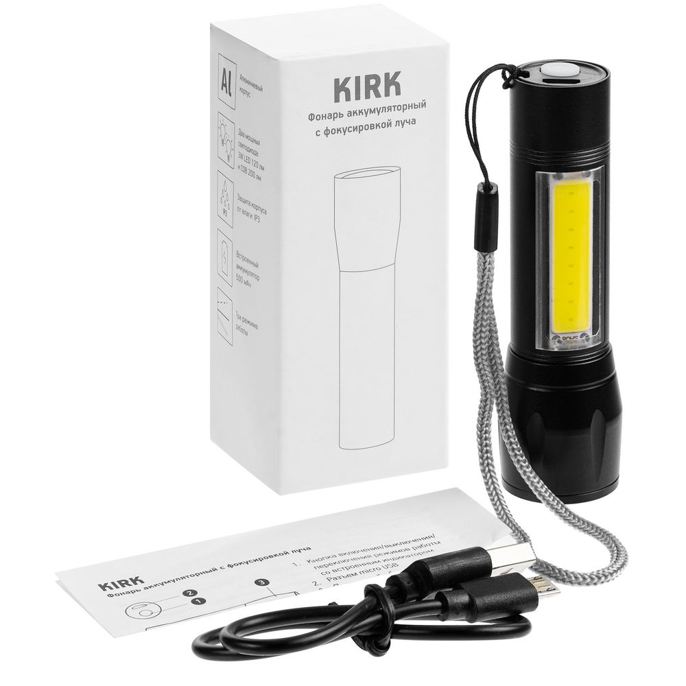 Фонарик аккумуляторный с фокусировкой луча Kirk, черный 555 ₽