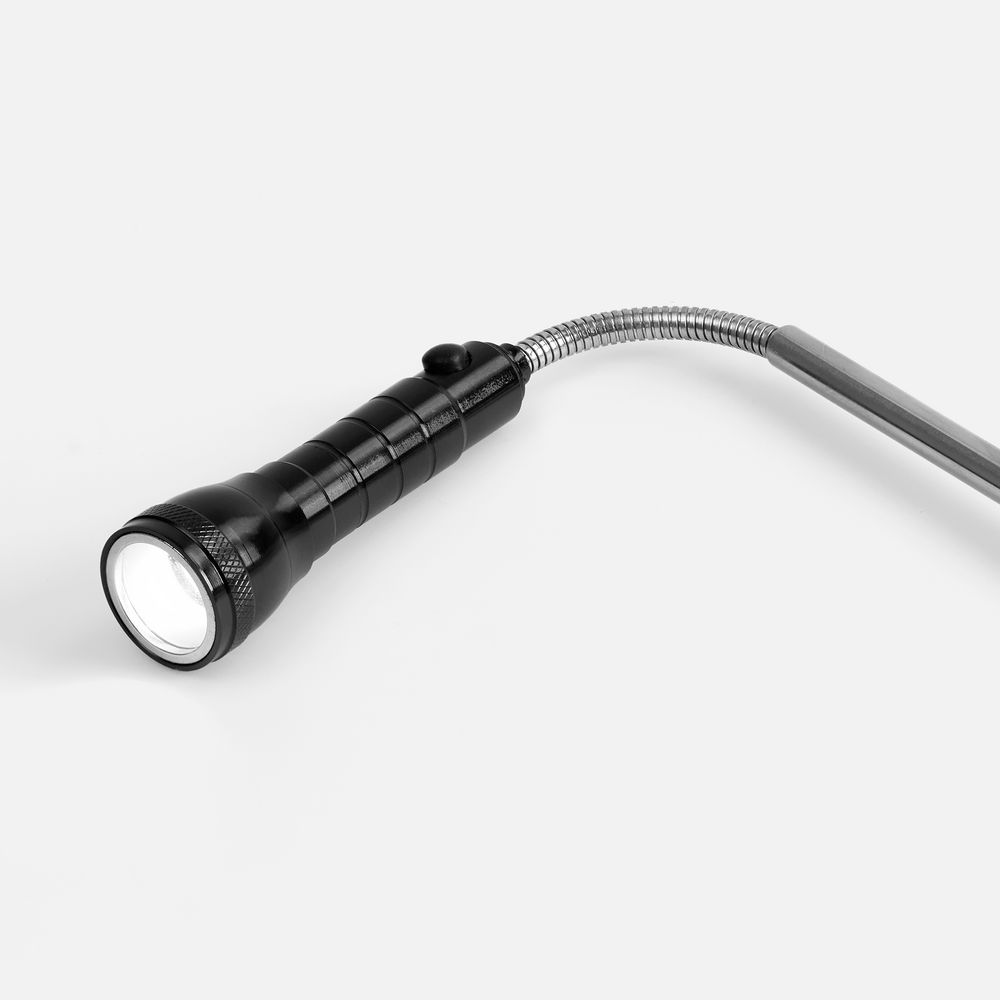 Компактный фонарик Flexion — идеальное средство для освещения труднодоступных мест. Регулируемая длина и гибкое крепление лампочки позволяют направленно и точечно подсвечивать нужные зоны в самых сложных местах, например, под капотом или за мебелью. С помощью магнита на корпусе можно закрепить фонарь на металлической поверхности, освободив руки, —особенно удобно при ремонте, строительстве или работе в гараже. Магнит на излучателе поможет с легкостью достать упавшие в узкие щели металлические предметы.