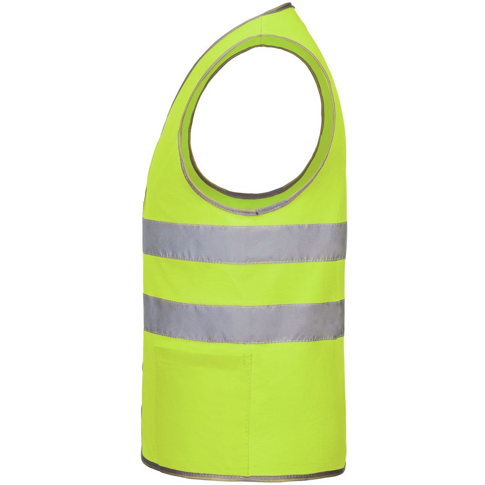 Светоотражающий жилет с застежками-липучками и двумя карманами.
