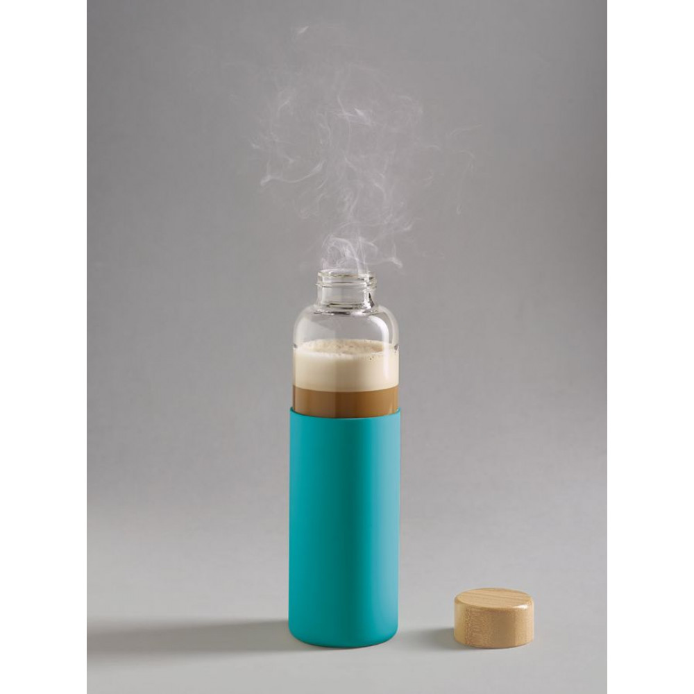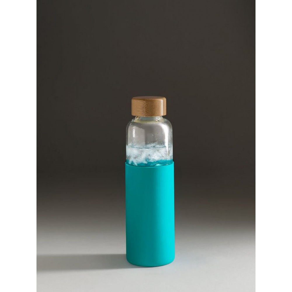 Бутылка со стеклянной колбой и крышкой из бамбука — изящное решение для тех, кто предпочитает природные материалы. Яркий силиконовый чехол защищает колбу от повреждений.