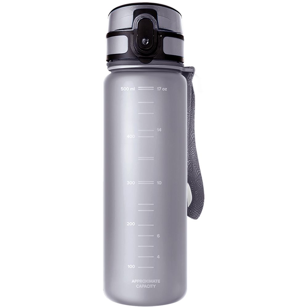 Матовое бархатистое покрытие бутылки приятно на ощупь, широкий ремешок дополнительно фиксирует бутылку во время использования, защитный колпачок не даст воде пролиться в сумке.