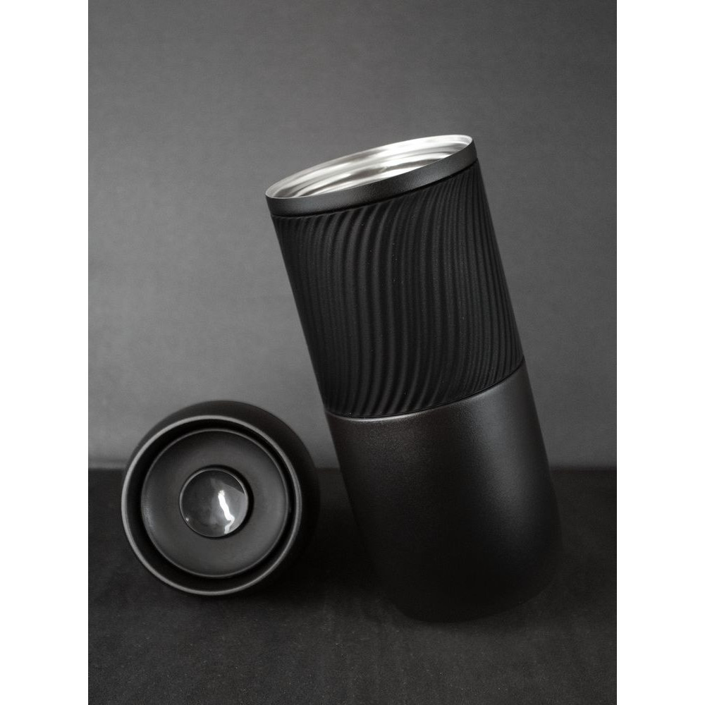 Силиконовая манжета позволяет комфортно держать стакан и в дождь, и в жару, и в холод. С ней стакан не выскользнет из рук, а ладони не замерзнут от соприкосновения с металлом зимой.