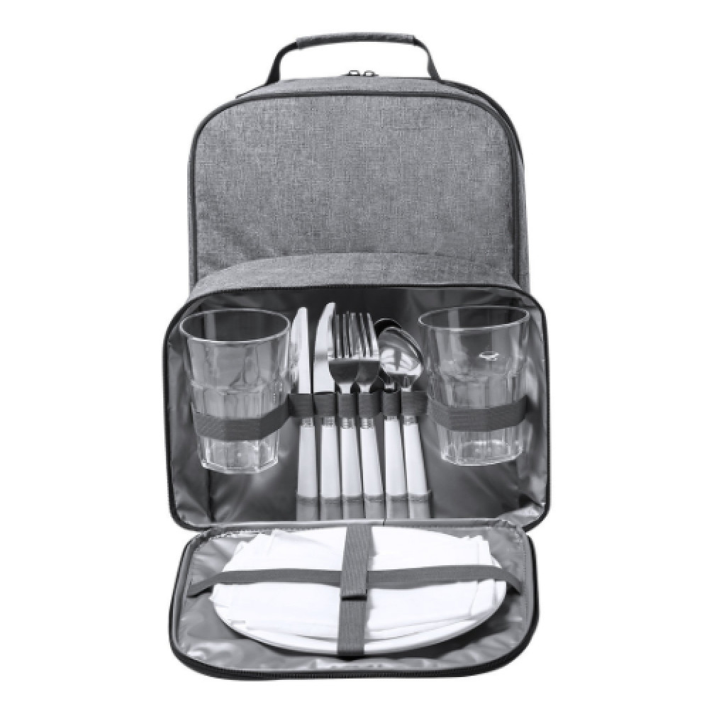 Включает в себя 2 стакана, 2 ножа, 2 ложки, 2 вилки, 2 тарелки и 2 салфетки. Отделение для холодильника с PEVA внутри и удобной ручкой для переноски. Мягкие ремни и мягкая спинка. Отличительный знак RPET на этикетке.