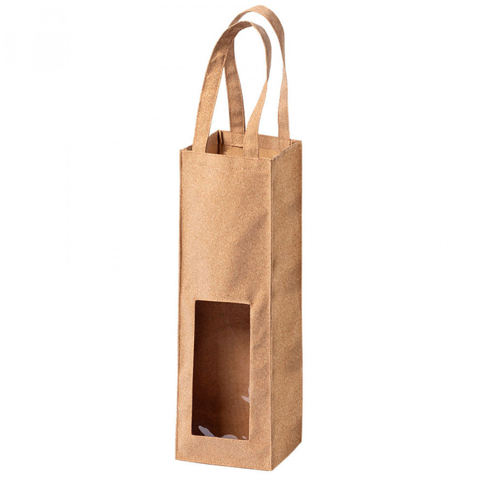 Упаковка для одной бутылки с окном и ручками, изготовленаиз пробкового дерева