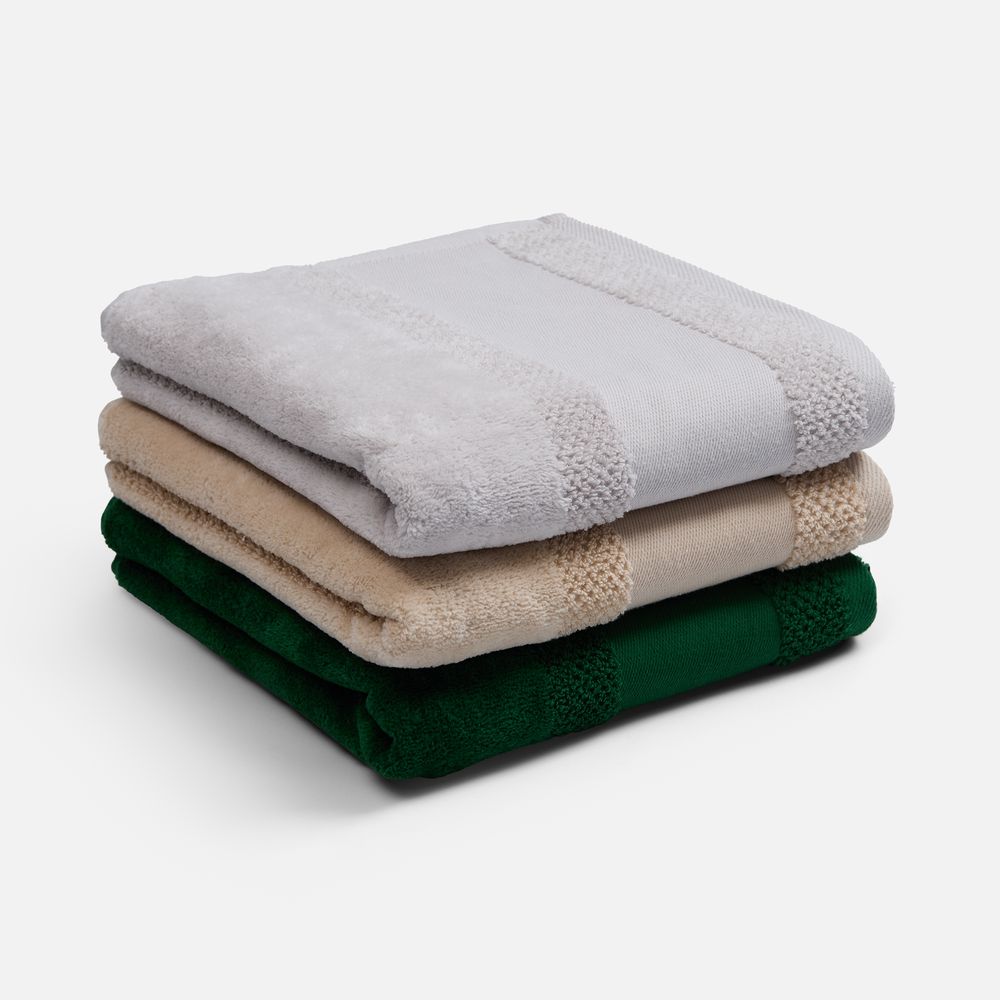 Пышная рельефная структура создает эффект роскошного спа-ухода и быстро впитывает влагу благодаря расположенным пучками петлям, а изящная полоса из стриженных петель с эффектом велюра добавляет ему мягкости и элегантности. Практичный гладкий бордюр станет идеальным холстом для нанесения символики и позволит создать уникальный персональный подарок.