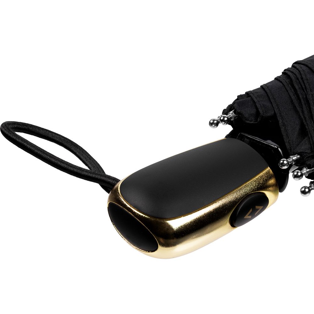 - Пластиковая ручка с золотистой вставкой и кнопкой для автоматического открывания зонта