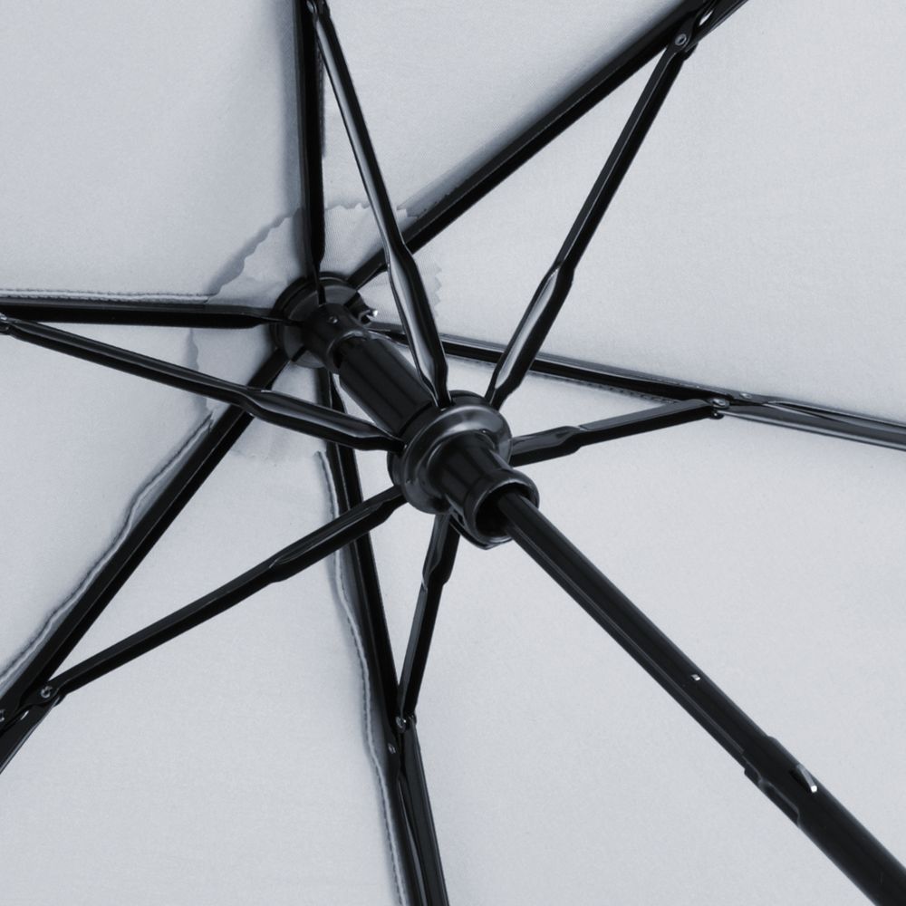 Изысканный компактный зонт с декоративными элементами из светоотражающего материала 3M Scotchlite в углах клиньев и эргономичной ручкой.
