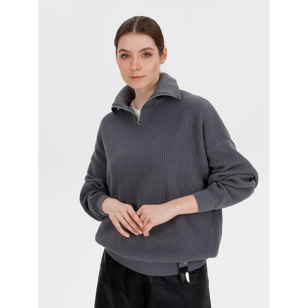 Siluetti Birne — плотный джемпер фактурной вязки со спущенной линией плеча позволит добавить в силуэт мягких линий и ненавязчивого объема, а также создать современный модный образ в лаконичном актуальном стиле, отдав при этом дань беспроигрышной классике. Дополнительным акцентом служит высокая горловина на молнии, а широкая резинка на рукавах и по нижнему краю изделия гарантирует максимальный комфорт.