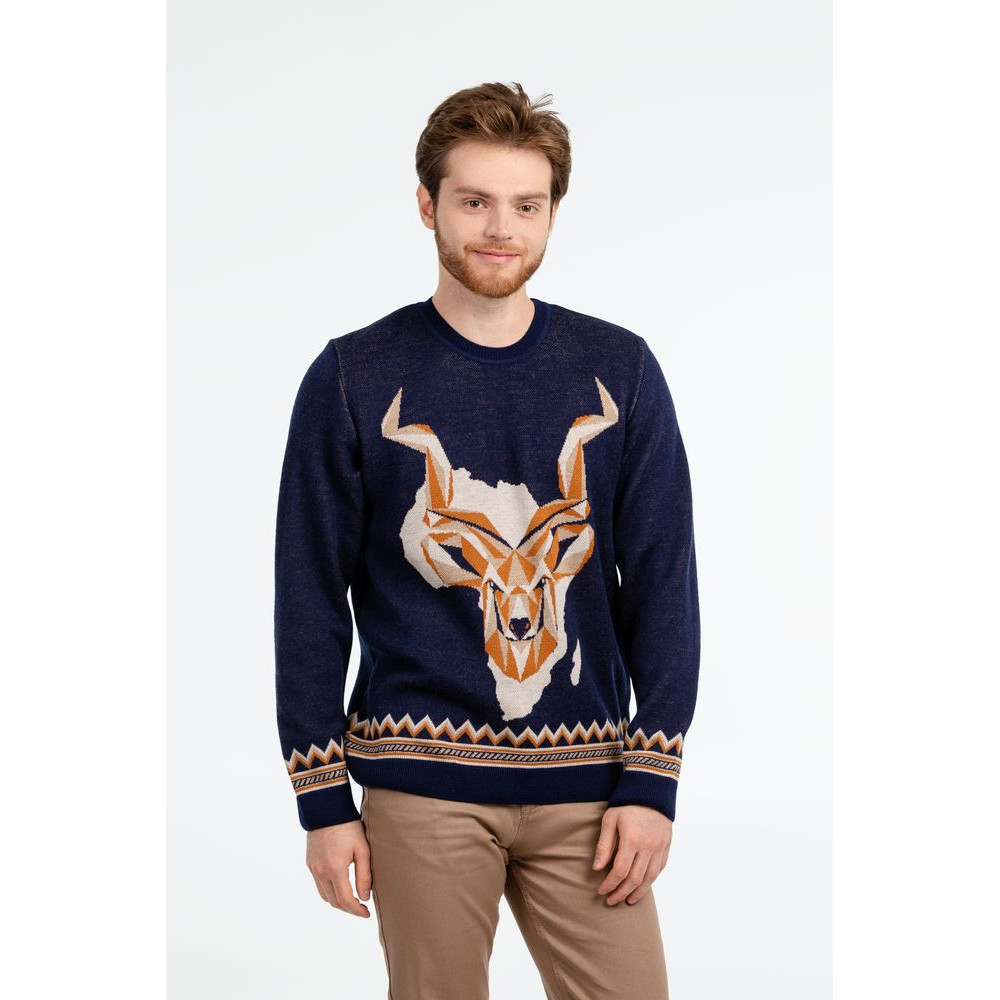 Джемпер с круглым вырезом и жаккардовым рисунком.
