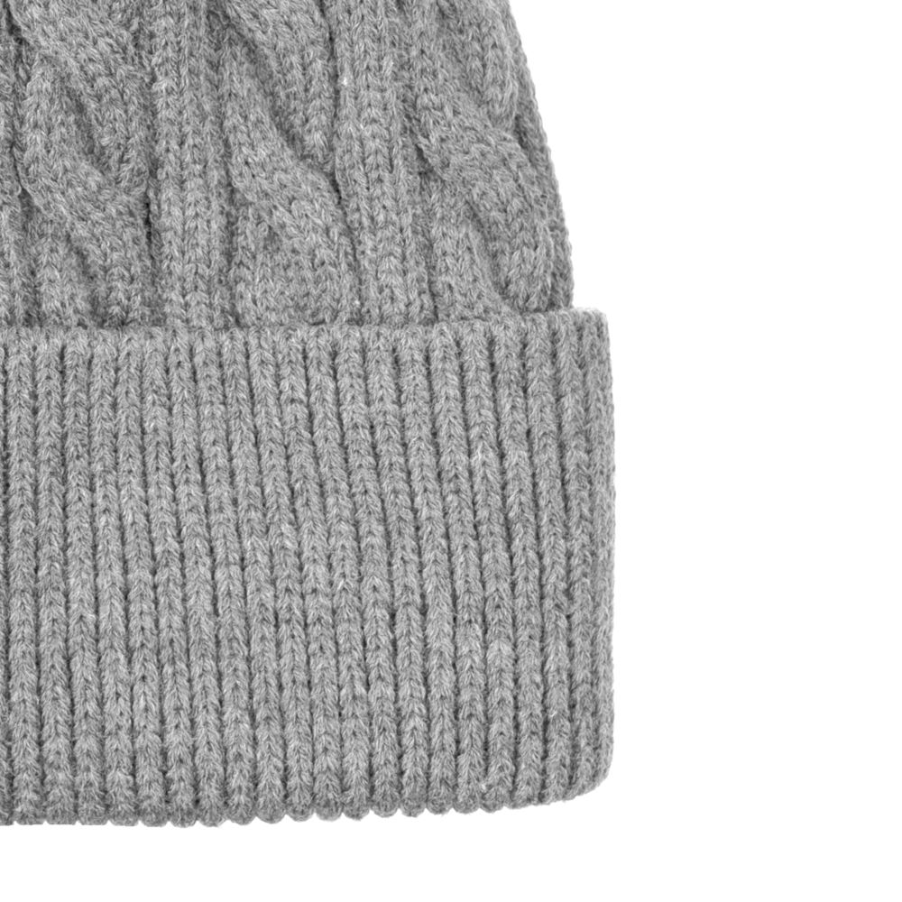 Однослойная шапка фактурной вязки с отворотом.