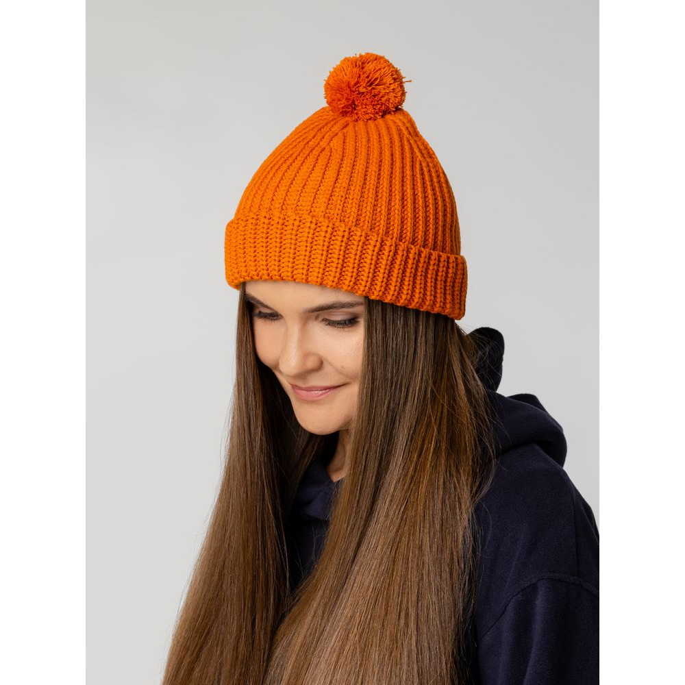 Однослойная шапка из высокообъемной пряжи с помпоном.
