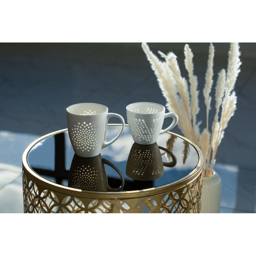 Чашка Coralli Rio — легкая, словно светящаяся изнутри посуда с легендарным узором «рисовое зерно». Благодаря тонкому слою прозрачной глазури кружка выглядит кружевной и ажурной, при этом напиток гарантированно остается внутри.