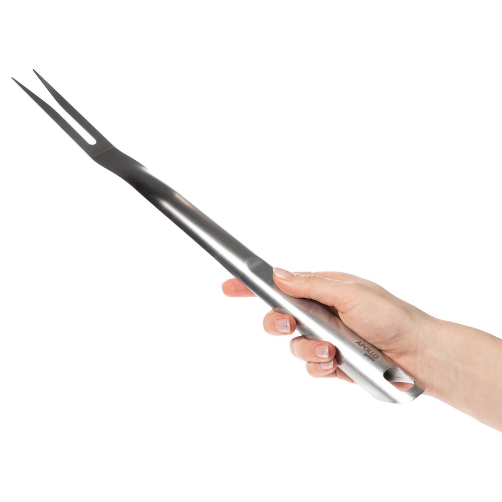 Вилка Grillo предназначена для переворачивания продуктов на гриле, мангале или жаровне, а еще с ее помощью удобно проверять степень готовности. Вилка имеет оптимальную для безопасного использования длину и отверстие, позволяющее удобно подвесить прибор на крючок.