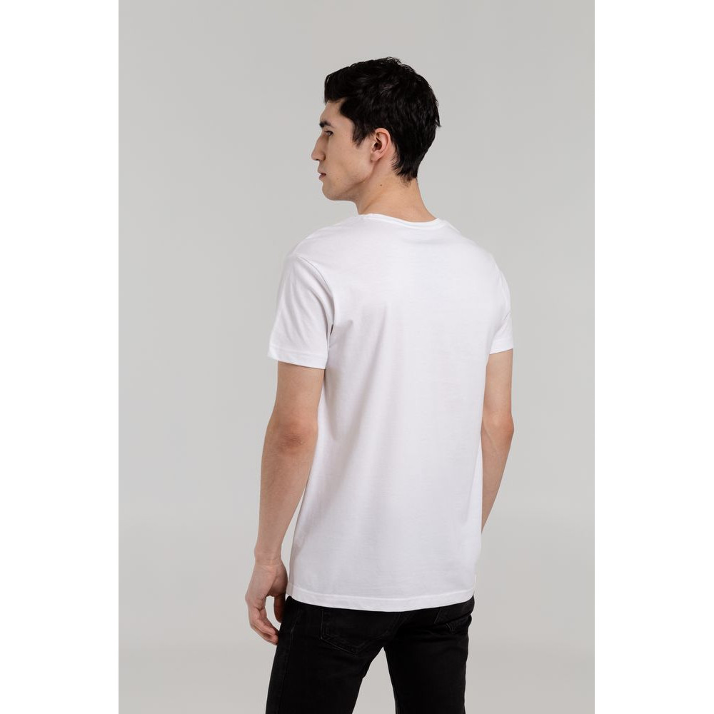 Мужская футболка с круглым вырезом. Двухслойная резинка предохраняет воротник от деформации после стирки.