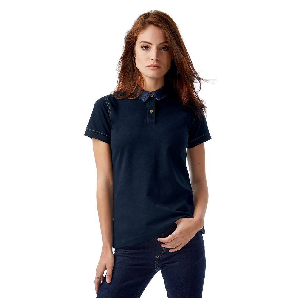 Рубашка поло с джинсовым воротником и контрастной отстрочкой.